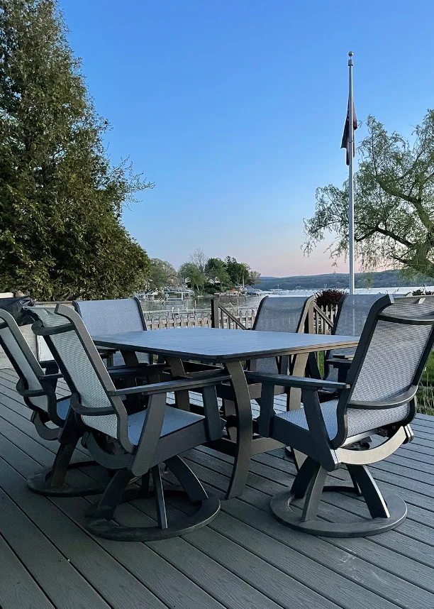 Poly-Lumber outdoor furniture offers the look of traditional wood without the upkeep. Made from recycled materials and engineered for strength, it resists moisture, fading, cracking, and warping — making it ideal for Western New York’s changing seasons. It’s a smart, low-maintenance investment that delivers lasting comfort and dependable performance year after year.